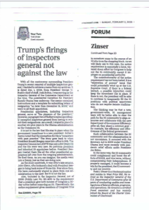 I am not really interested in commenting on national stories but with all the commotion about President Trump removing 17 departmental IGs, and since I am the only former federal IG in Cincinnati, I thought I should add my perspective on the subject.