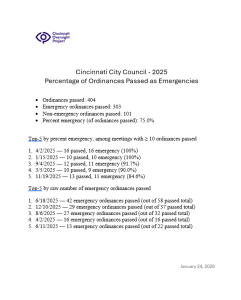 Cincinnati City Council 2025 Percentage of Emergency Ordinances